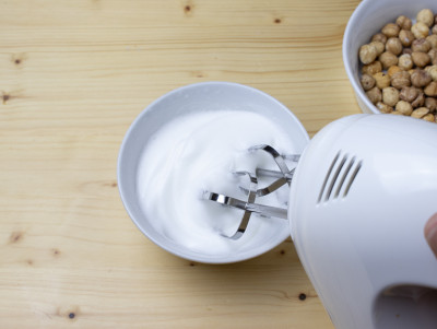 A parte, monta gli albumi a neve fermissima con delle fruste elettriche ed uniscile al miele. Mescola delicatamente con una spatola dal basso verso l'alto e continua a cuocere a bagnomaria per altri 5 minuti, infine unisci le nocciole tostate e continua a mescolare con la spatola.